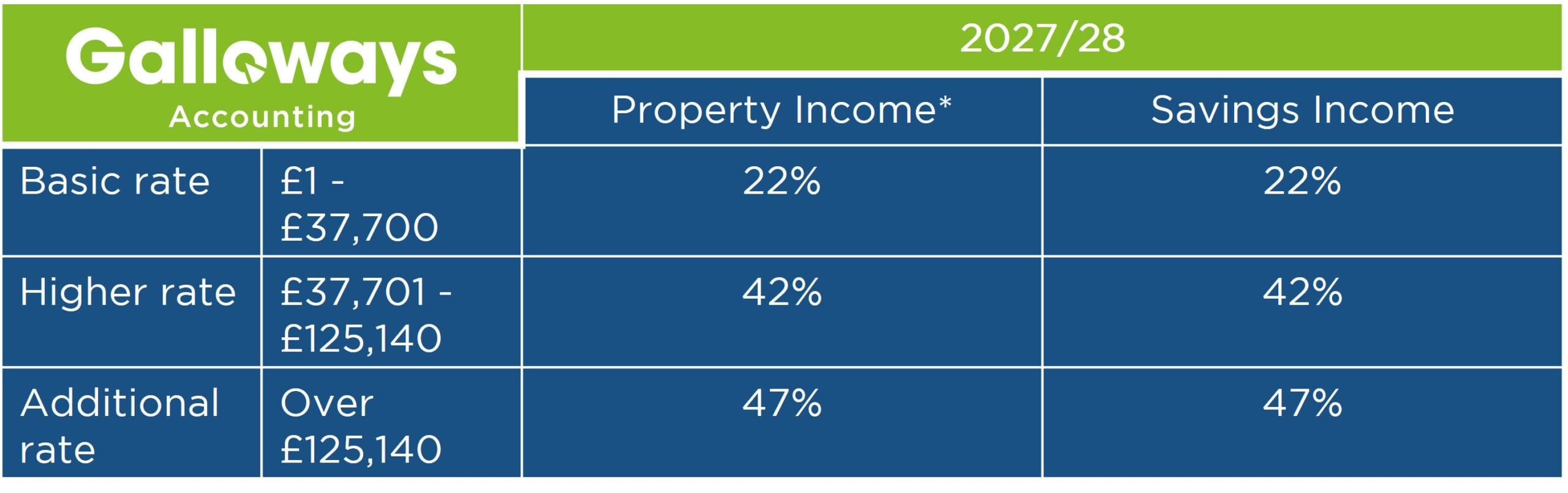 The Chancellor announced a 2% tax rise across the basic, higher and additional rate bands for income for Landlords and Savers effective from April 2027.